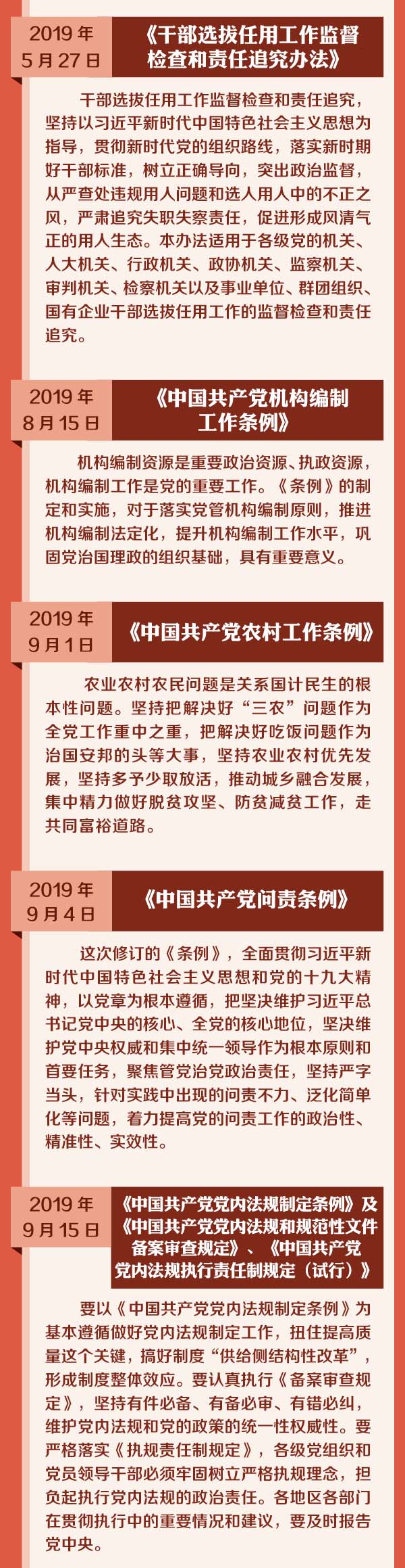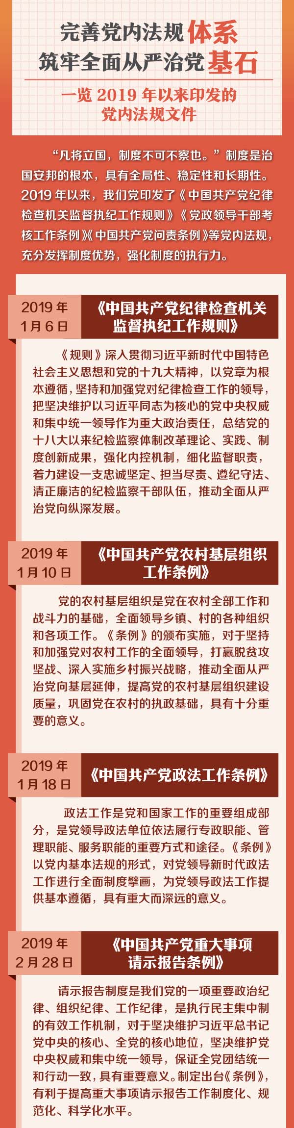 完善党内法规体系 筑牢全面从严治党基石 一览2019年以来印发的党内法规文件