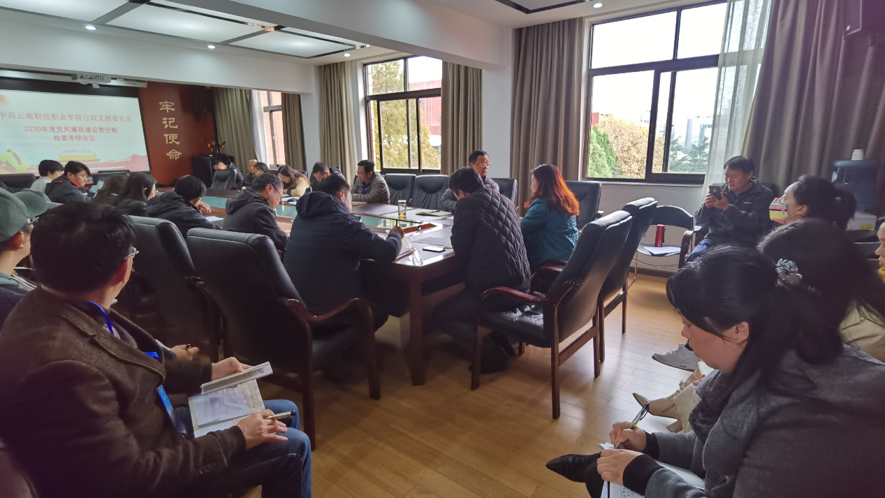 根据《云南财经职业学院2020年度党风廉政建设责任制检查考核实施方案》的部署,11月4日下午,学校第八考核小组组长、学校党委委员张国庆同志带队一行3人对行政支部2020年度党风廉政建设责任制工作落实情况进行考核。校长陶昌学,行政支部全体党员,行政支部所属部门(党政办、财务处、图书馆、继续教育学院)的负责人和教职工参加会议。会议由行政支部支部书记丁燕秋主持。