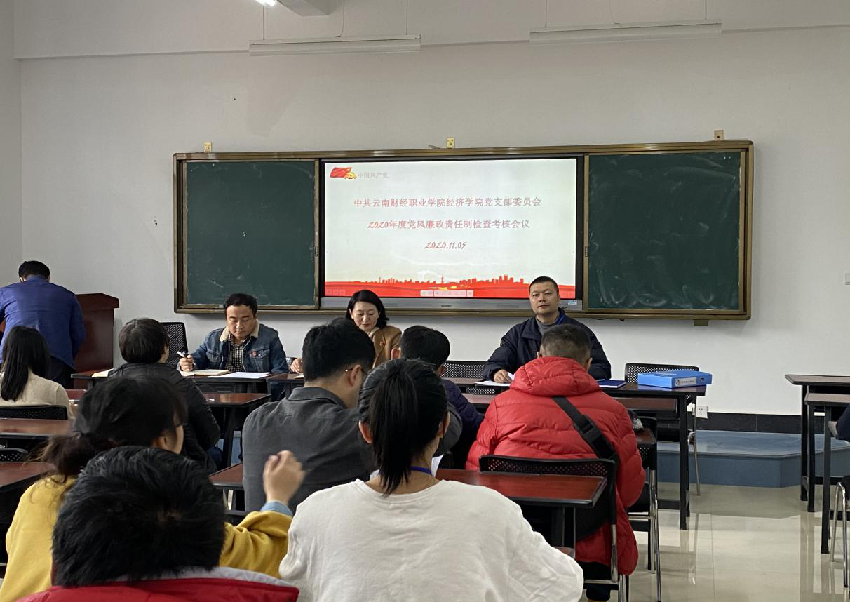 在经济学院支部和所属部门自查、自评的基础上,2020年11月5日下午15:30,在第三教学楼601教室召开了经济学院支部党风廉政建设责任制考核汇报会,向第三检查考核组进行支部及所属部门的党风廉政建设工作汇报。