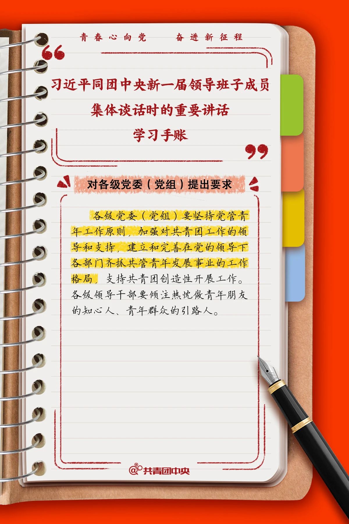 习近平同团中央新一届领导班子成员集体谈话时的重要讲话学习手账来啦!