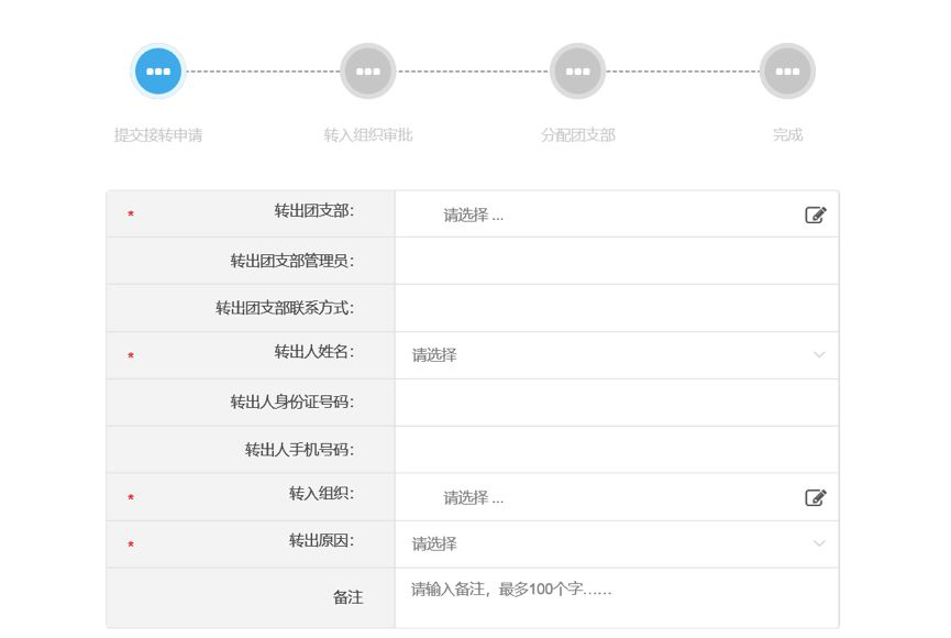 待转出的学院团委、团总支、团支部管理员直接对团员组织关系接转操作:(无需毕业生团员自己操作,但仍需要收集团员的转入团组织信息)。