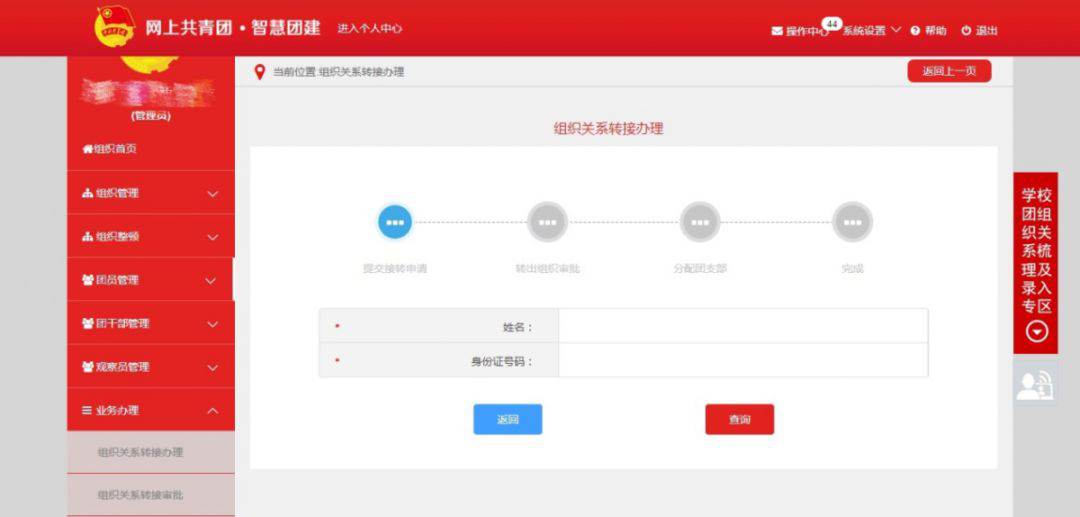 转入团组织管理员直接对团员组织关系接转操作