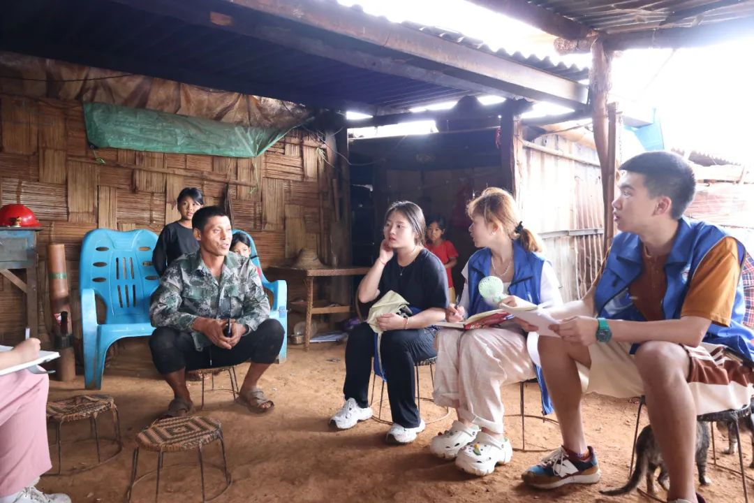 7月29日下午,“现代化边境幸福村建设实践团”的20名同学们在我校驻班幸社区工作的丁维国老师和临沧市耿马县孟定镇班幸社区武装干事王勇的带领下赴班幸社区千家寨组走访调研,我们首先采访了千家寨族副组长田小英,了解了她家的基本情况,同时也对千家寨组有了初步认识,他们组与班幸社区大湾塘组发展的情况有所不同,大湾塘地处平坦,更适宜种植多种农作物,而千家寨不仅土地可耕种面积少,还缺少水资源,自然环境、地理位置上都不具备优势,只能种植橡胶,导致当地的发展受限,经济发展相对较弱。
