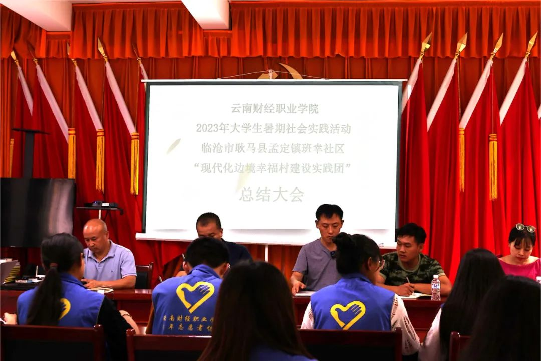 持续一周的“三下乡”社会实践告一段落,我们在班幸社区居民委员会进行了本次实践活动总结。老师们的发言依次如下: 班幸社区党总支书记、主任 张庆:之所以现在很多基层干部愿意扎根于边境基层,是因为祖国的建设和发展需要大家的付出,是金子在哪里都会发光。在党的领导下,希望年轻人坚定信仰,勇担责任,紧密团结,砥砺前行,无论在哪里都能大放异彩,将我们的青春力量与祖国繁荣发展相融合,为国家的持续发展和社会的进步注入源源不断的活力。 班幸社区武装干事 王勇:希望大家回到学校以后继续发扬大学生吃苦耐劳,积极上进的这种精神。 云南财经职业学院驻村老师 丁维国:虽然本次社会实践活动已结束,但后期宣传希望大家认真完成,你们既是实践者,也是宣传者。 云南财经职业学院驻村第一书记 潘国平:同学们来到边境,来到基层,通过本次边境社会实践活动,希望同学们切身感受和体验后真正明白基层工作者和周边老师们每天的工作状态是什么,究竟在做什么,边境幸福村究竟是怎么建设的?从而在今后的学习中找到自己的方向和目标,以实际的行动争取为家乡、祖国的建设贡献自己的一份力量。实际的行动, 云南财经职业学院校团委组织委员 邹焕姣:干一行,爱一行,爱干一行,无论以后你们从不从事和自己本专业对口的工作,都希望你们真正的爱上你们选择的这个岗位,像这些基层干部老师们一样爱岗敬业,积极奉献,为祖国的建设做贡献。