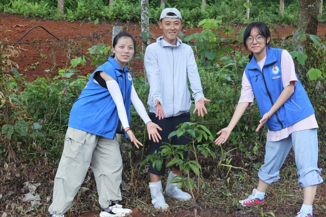 7月28日上午,“现代化边境幸福村建设实践团”来到了耿马县孟定镇班幸社区居民委员会,在我校驻班幸社区工作的老师丁维国、潘国平和班幸社区党支部书记、主任张庆的带领下我们开展了植树活动。此次活动共种植40棵果树,有三丫果、梨、荔枝、沃柑、百香果、龙眼6种。我们通过老师们的讲解,了解到种植果树有挖坑、施肥、填土、浇水、盖膜、覆土6个步骤,大家虽然汗流浃背,但亲手种植的过程培养了大家的毅力和团队合作精神,收获良多。希望每棵小苗都可以茁壮成长,等到明年社会实践活动时,我们会再来看这些“财职希望树”。