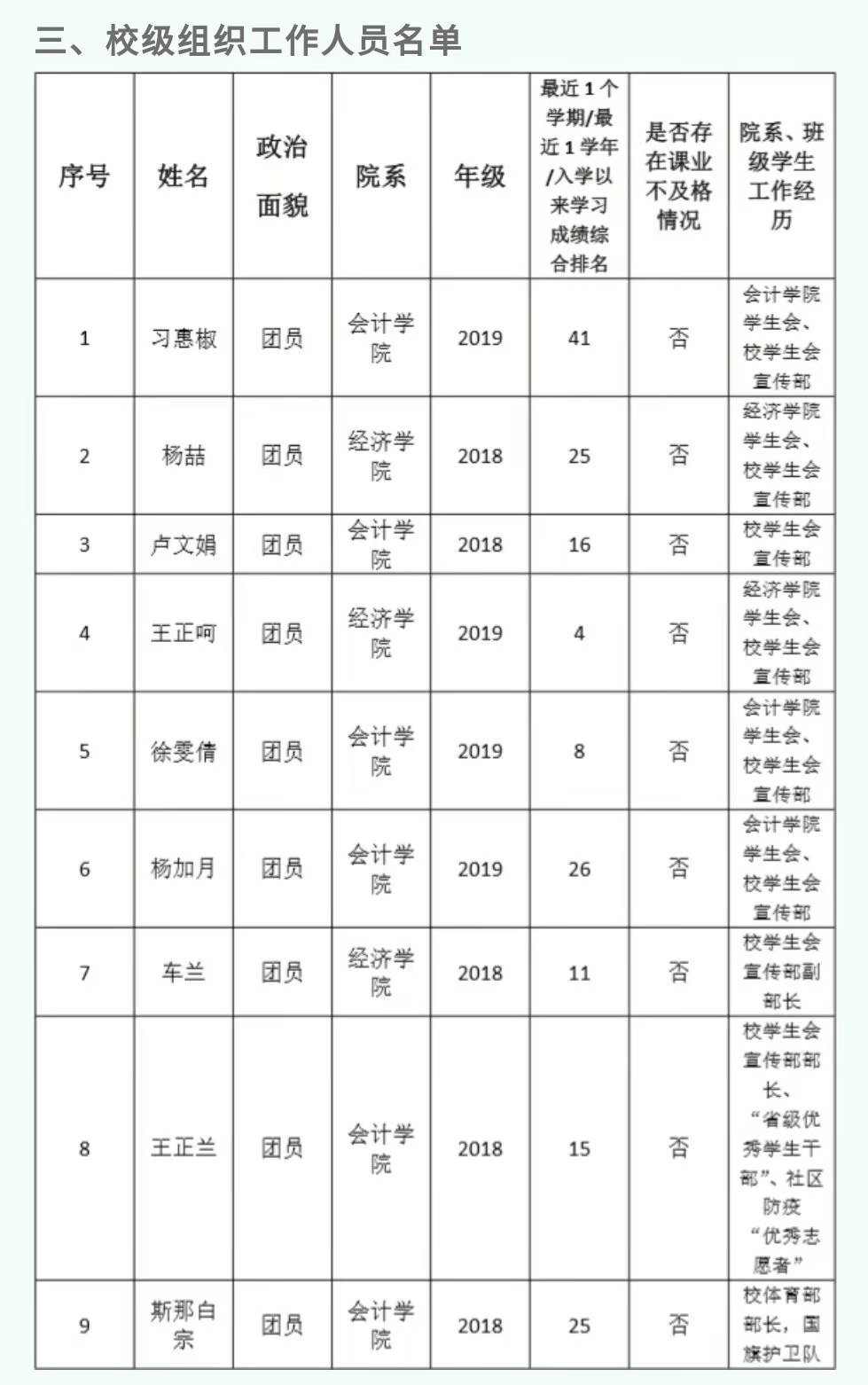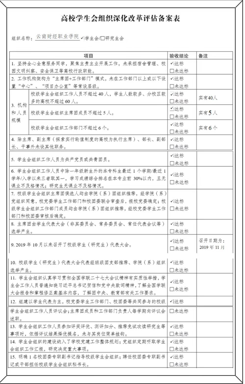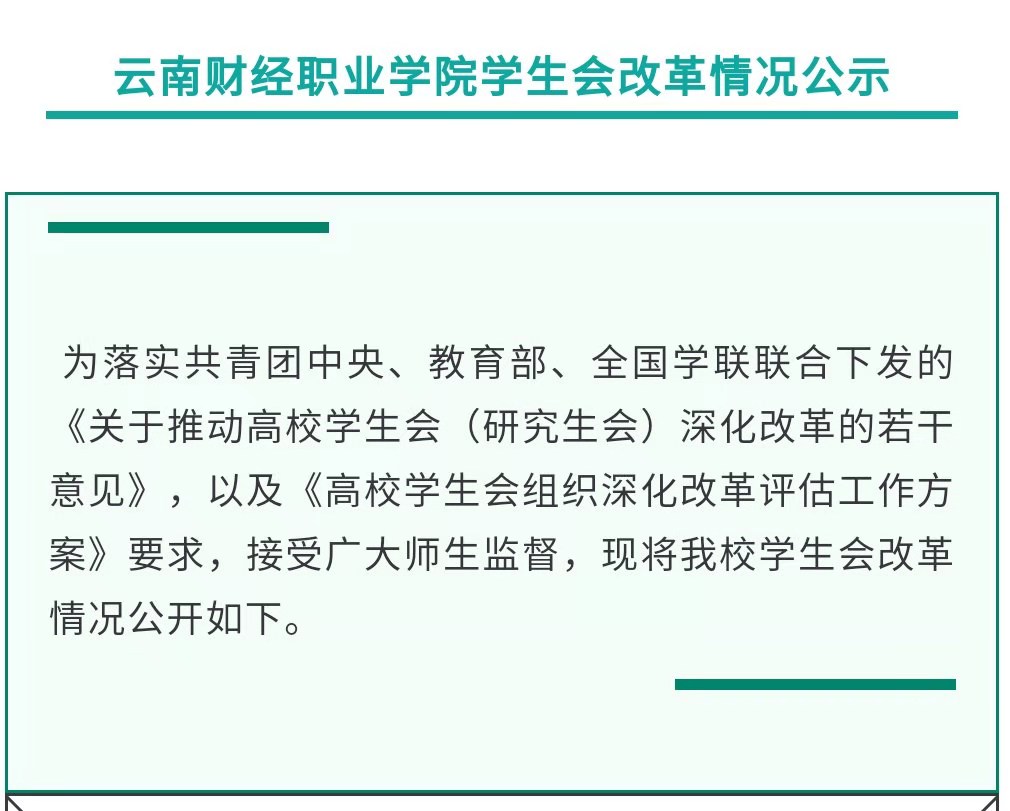 云南财经职业学院学生会改革情况公示