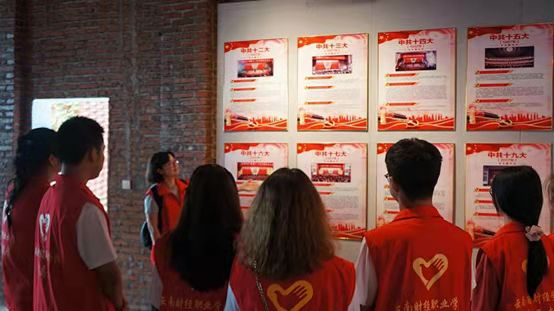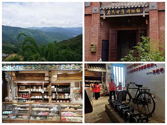 参观结束,团队马不停蹄赶往集历史遗迹、人文景观、自然生态、普洱茶文化为一体的古老村落--大歇场。队员们参观了位于半山腰的李剑锋馆长的私人茶马古道收藏馆,馆内展示了马帮牛队途径陡峭险峻的茶马古道时人马劳顿的缩影,“山间铃响马帮来”的既视感应运而生。还展示了古时妆嫁祭祀的阁楼橱窗、八零年代供销社内场景重现等具有年代感和历史意义的藏品。拉祜族的和谐,汉族的热情,彝族的外放……一曲《婚誓》将我们更加贴近这个芦笙恋歌唱响的地方。馆内二楼是党史学习教育展厅,中国共产党的百年党史、精神谱系一一体现,带队老师张苗苗借助馆内党的一大到十九大的宣传栏,讲了一堂简单生动的党史主题团课,队员们对于党的一大到党的十九大的会议意义、背景和议题有了进一步了解,特别对党的十九大系列会议精神进行了深入学习。