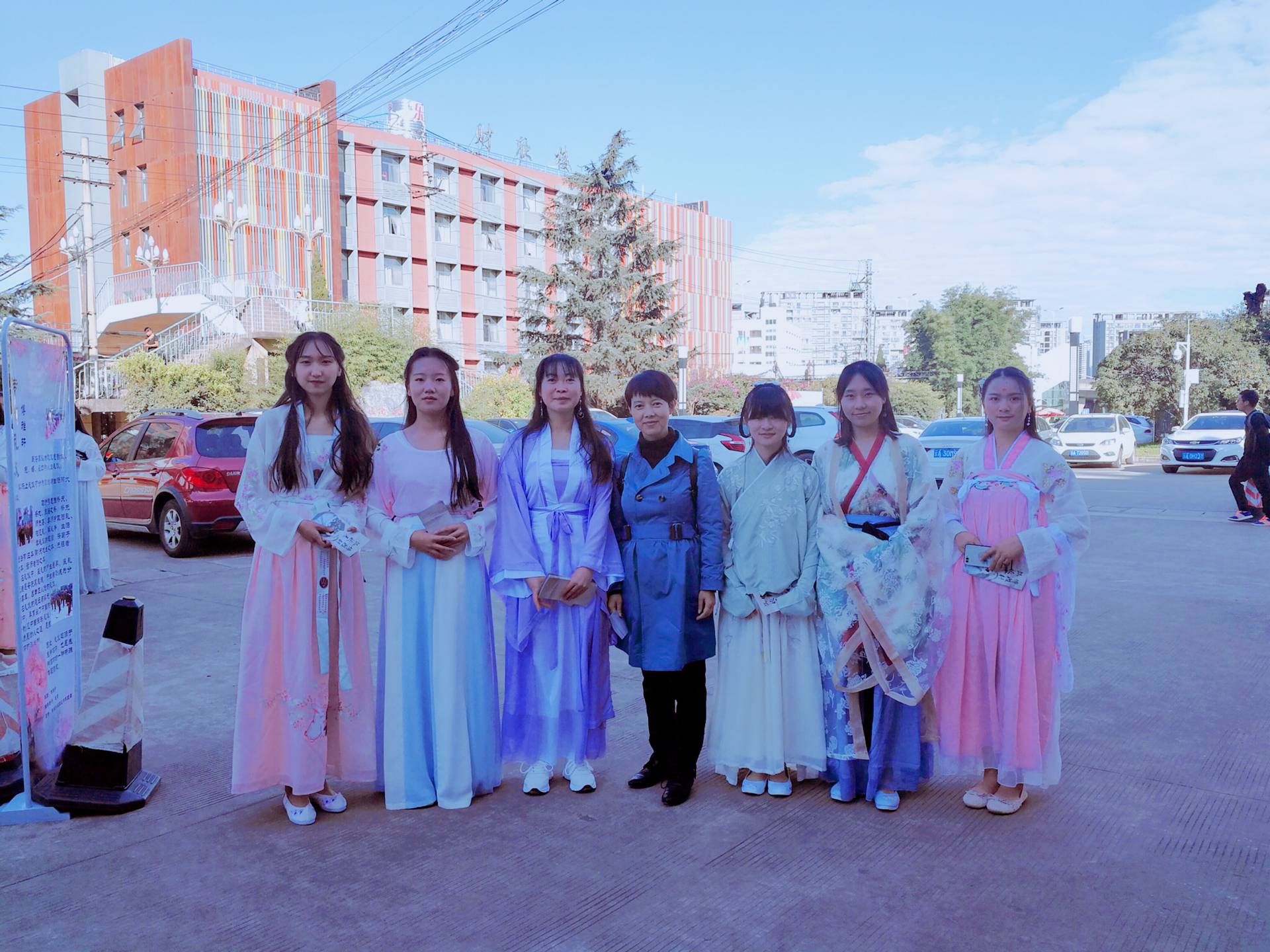 活动过程中的我们也有和喜欢汉服的人进行拍照,有同学想要了解们为他们讲解,过程中,我们也和喜欢汉服的老师进行拍照,最后活动非常成功的结束,同学们都感受到了,汉服的味道,社团成员也很努力的为这次社团活动付出,本次活动也达到了我们想要传承汉服文化的目的,也为同学们讲解了汉服的穿搭和传统礼仪,最后活动完美的画上句号。