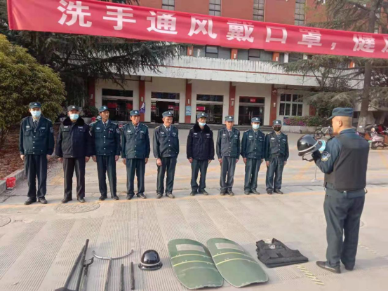 为进一步做好校园安全稳定工作,强化校卫队员应急处突能力,以扎实的业务素质和高度的责任心迎接即将到来的建党100周年和COP15大会,3月20日上午,根据工作计划,我校保卫处组织安保人员开展了防暴恐知识学习及装备运用实操训练。内容包括反恐基本知识学习,防刺服、防割手套、警棍、防暴叉和盾牌的使用操作。下一步,学校还将联合辖区公安机关精心策划、组织有师生参与的反恐防暴应急演练。