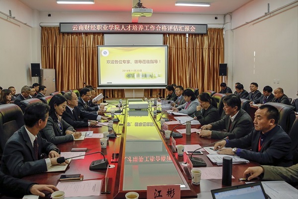 2018年11月19日至22日,学校迎来由省教育厅委托云南省高博尔教育评估中心组织实施的高职院校人才培养工作合格与内涵评估。进校考察前,专家组审阅了学校的《评估自评报告》和《状态数据分析报告》,查看了学校人才培养工作状态数据采集平台。在3天的实地考察评估中,专家组一行7人围绕领导作用、师资队伍、课程建设、实践教学、特色专业、教学管理和社会评价七个评估指标,听取了陶昌学院长关于学校评估建设工作的汇报;实地考察了学校校内实习实训基地及校园设施情况;召开了合作企业代表、就业单位代表、教师、学生、毕业生等5个座谈会,深度访谈了58人次;随机抽取了会计和计算机应用技术2个专业,《思想道德修养与法律基础》《财务会计》《Photoshop》3门课程进行深度剖析和课程说课;随堂听了《思想道德修养与法律基础》《会计基础》《财务管理》《财务管理实训教学平台》《企业经营管理ERP沙盘实训》《大学生职业发展与就业指导》《税法与涉税会计》等10门课程;走访了学校26个教学单位和职能部门,对学校的人才培养工作进行全方位考察、分析和评价。
