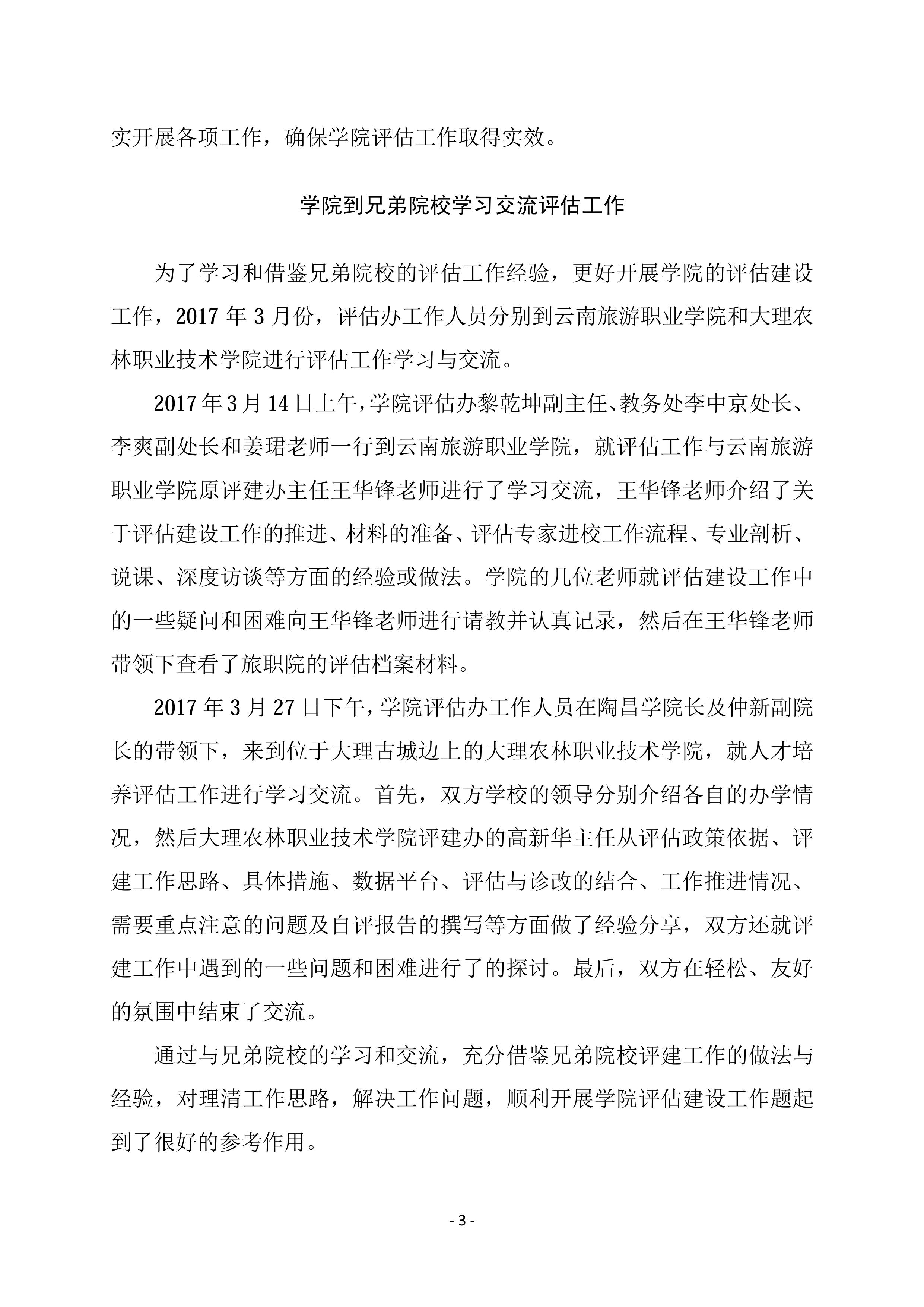 到大理农林职业技术学院学习交流评估工作