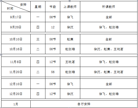 教研室教研活动原则上先按照系里的安排执行,在系里没有统一安排的情况下,本教研室每两周进行一次统一的教研活动,时间安排在周四下午,活动内容应包括:统一备课、教学经验交流、信息技术研讨、课程内容与计划讨论调整。