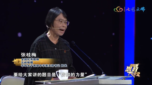张桂梅校长以“信仰的力量”作为主题讲述了自己作为一名共产党员是如何依靠信仰的力量在贫困山区创办女高的初心和使命,是如何通过发扬“蜡炬成灰泪始干”的精神带领女高教师把贫困山区的1600多名女孩送入大学校园的人生经历。
