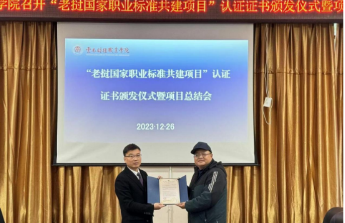 12月26日,“老挝国家职业标准共建项目”认证证书颁发仪式暨项目总结会议在云南财经职业学院财苑楼三楼会议室召开内举行。