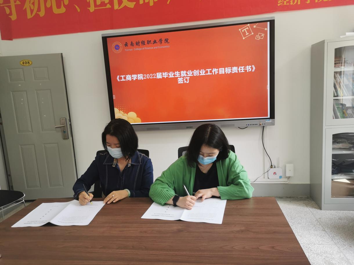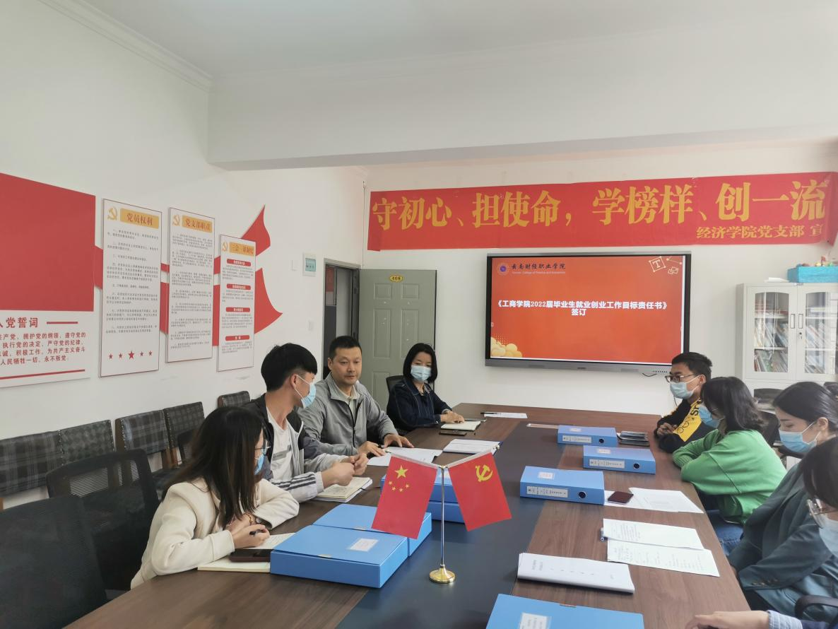 接着,2022届毕业班班主任就本班目前学生就业创业指导工作进行汇报。2022届毕业班班主任对专升本考试后调研调查、已收取就业协议、实习就业单位、就业意愿了解等情况逐一进行发言,并对下一步就业工作计划进行了汇报。汇报结束,石彬同志代表工商管理学院与2022届毕业班班主任签订《工商管理学院2022届毕业生就业创业工作目标责任书》。