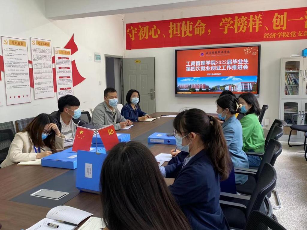 为深入贯彻全国、云南省和我校毕业生就业创业工作会议精神,进一步落实2022届毕业生就业创业工作,工商管理学院于2022年4月22日在敬德楼三楼会议室召开工商管理学院2022届毕业生就业创业工作推进会。学院领导、2022届毕业班全体班主任及就业专员参加了会议,会议由学院院长石彬主持。