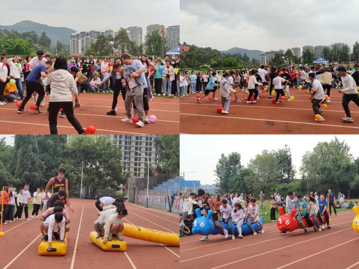 运动会共有踩气球,毛毛虫接力赛以及过河搭桥三个项目。老师们一改三尺讲台的文雅和严厉,卸掉了工作和生活的压力,尽情地释放着自己的童心,欢呼雀跃、激情四射,享受着工作之余的闲暇时光。