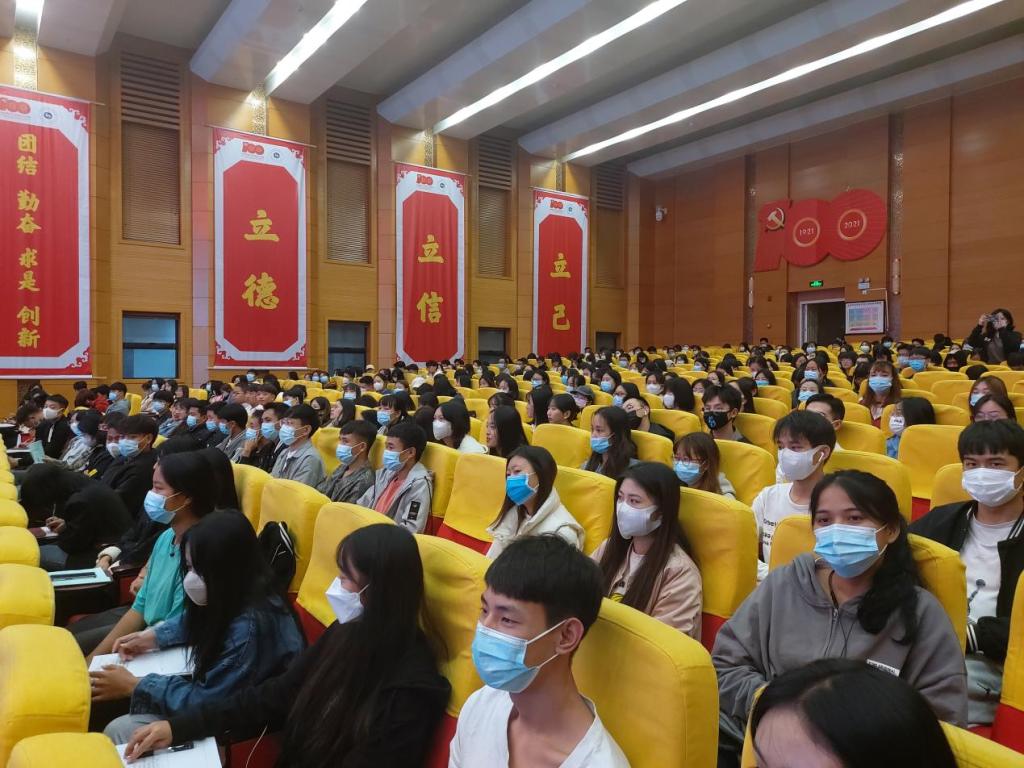 为深入推进经济学院党史学习教育,切实做好经济学院2022届毕业生顶岗实习和就业工作,把“我为群众办实事”落到实处。2021年10月31日19:00,经济学院在大礼堂举行2022届毕业生顶岗实习动员暨专场招聘宣讲大会。经济学院领导、2022届全体毕业生及班主任、天马微电子、京东物流和一心堂三家企业代表参加大会。