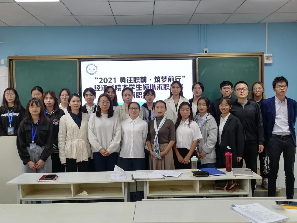 为持续推进党史学习教育,贯彻习近平总书记在庆祝中国共产党成立100周年大会上的重要讲话精神,把“我为群众办实事”落到实处,经济学院于2021年10月14日下午,在第二教学楼举行了“党建+就业创业指导”系列活动之首届大学生模拟求职大赛。