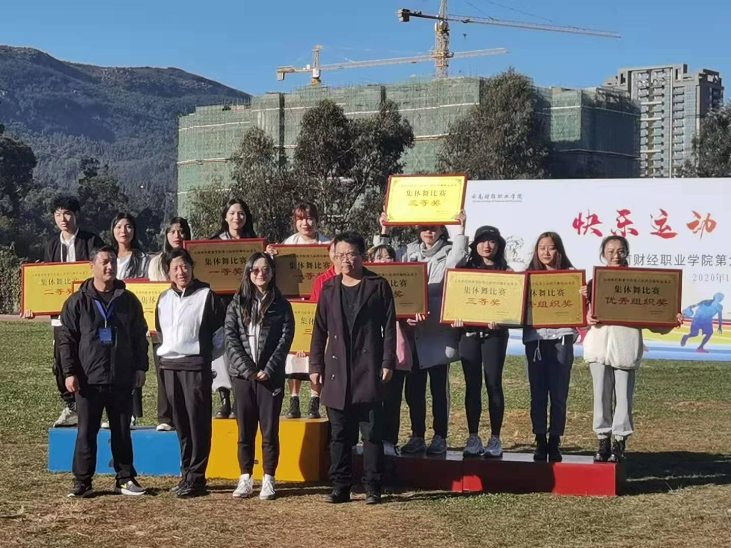 颁奖仪式上,阳光落在运动场上,更落在集体舞队员们心里!或许她们并不像运动员那样在运动场上驰骋,但正因为有了她们,运动场上的激情才被点燃。集体舞队员们充分展现了信息工程学院学子激昂向上的青春魅力和团结拼搏的精神风貌。观众的掌声、运动员的感叹、老师的鼓励,都是对她们最深切的赞美。