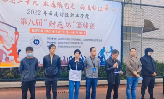 5月16日下午,云南财经职业学院第八届“财苑杯”篮球赛正式拉开帷幕。学校党委仲新副书记致开幕词。学校体育部主任段淑芳、学工部部长杨帆、团委书记王俊奇等参加开幕式活动。
