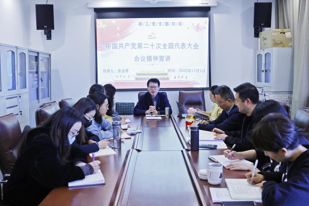 为全面学习宣传贯彻中国共产党第二十次全国代表大会精神,按照中央、省委、省委教育工委关于做好党的二十大精神学习宣传工作的要求,2022年11月1日下午,学校党委书记张金甫为政工党支部的全体党员作党的二十大精神专题宣讲。