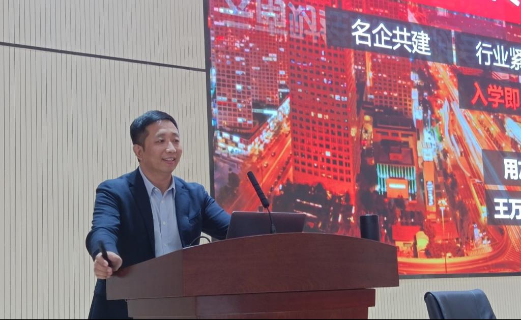新道科技股份有发公司副总裁刘曙光在开班典礼中发表讲话,他首先代表新道科技对同学们成2020级会计专业(云财务会计师方向)班新生,表示衷心的祝贺。学院“立德、立信、立己,达观、达技、达人”的校训与新道科技“专业奋斗、成就客户、健康阳光”的核心价值观理念高度契合。此次的“用友·新道云财务会计师”开班,是落实数智产业学院建设的第一步、是深度校企合作新起点,相信通过双方紧密的配合与协同,一定能够在学院专业建设、双师型教师培养、精品课程与教材开发、学生高质量就业等方面取得丰硕成果。最后,希望用友·新道云财务会计师班的同学们拿出态度和热情,激发想象力、点燃创新能力,构建思维框架,加强学习,提高自己的本领,以迎接未来职场的挑战,并祝愿每一位同学有所成就,前程似锦!