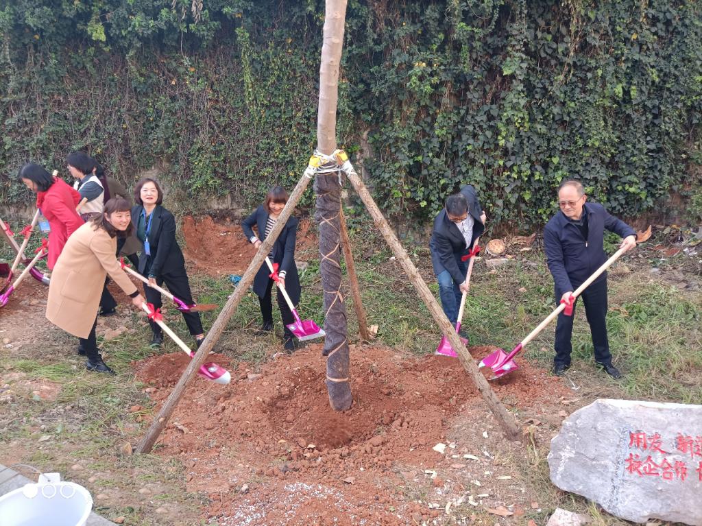 秋风送爽,白云悠扬的11月6日是个好日子,三重喜:学校八十周年华诞之喜,产业学院成立之喜,云财务会计师开班典礼之喜班典礼后与会校双方的领导移步到校企合作协同育人实践教学基地旁共同栽下了有深纪念意义三棵蓝花楹,树木象征着老师树人,三人行必有我师