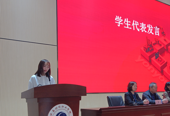 2020级云财务会计师班的丁沛然同学作为学生代表发言。她首感谢学校和企业为学生人才培养和专业建设提供的帮助和支持。金风玉露,风月无边,在这个秋天,代表全体云财务会计师同学们表达用一纸三千风月,将梦想锁进心城,从此眼眸里霓虹迷离,未来可期的美好憧憬