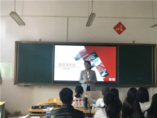 随后诺仕达集团人力资源中心邓珊经理开始授课,第一节课是“走进诺仕达”,带同学们了解昆明诺仕达集团的发展历史和未来规划,介绍了昆明诺仕达集团创始人任怀灿先生的座右铭——用我们智慧和双手,摆脱历史遗留给我们的贫困包袱,使国家富强,人民富裕。希望同学们以此激励自己,未来可以通过自己的努力回馈社会。之后有百年餐饮、翠韵天下、职业生涯规划等课程。