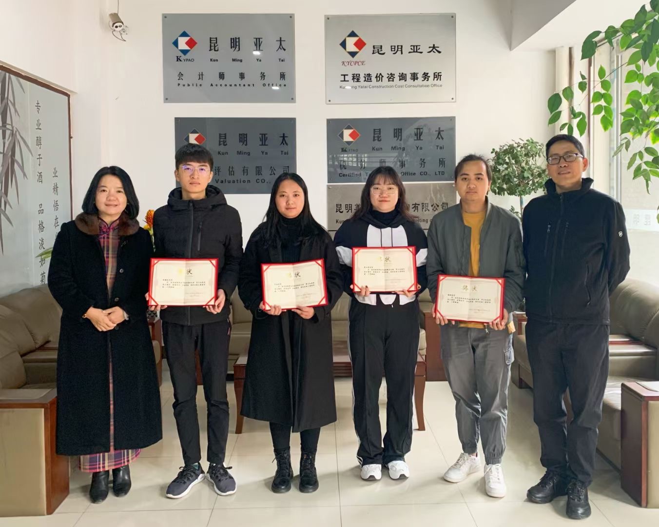 2020年123日上午,招生就业与合作交流处副处长石彬、干事付琪赴昆明亚太会计师事务所走访交流,并参与2017级“亚太班”奖学金发放仪式。昆明亚太会计师事务所所长闻山松和党支部书记、工会主席兼业务五部经理朱月强、2017级“亚太班”4名获奖同学共同参与此次仪式。