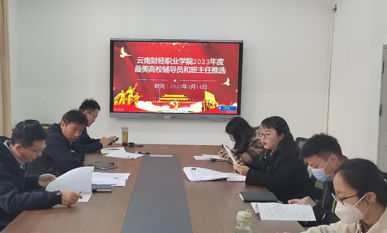 2023年3月14日上午,学工部组织召开2023年第1次学生工作领导小组会议。评选“云南省2023年度最美高校辅导员和班主任”云南财经职业学院人选。