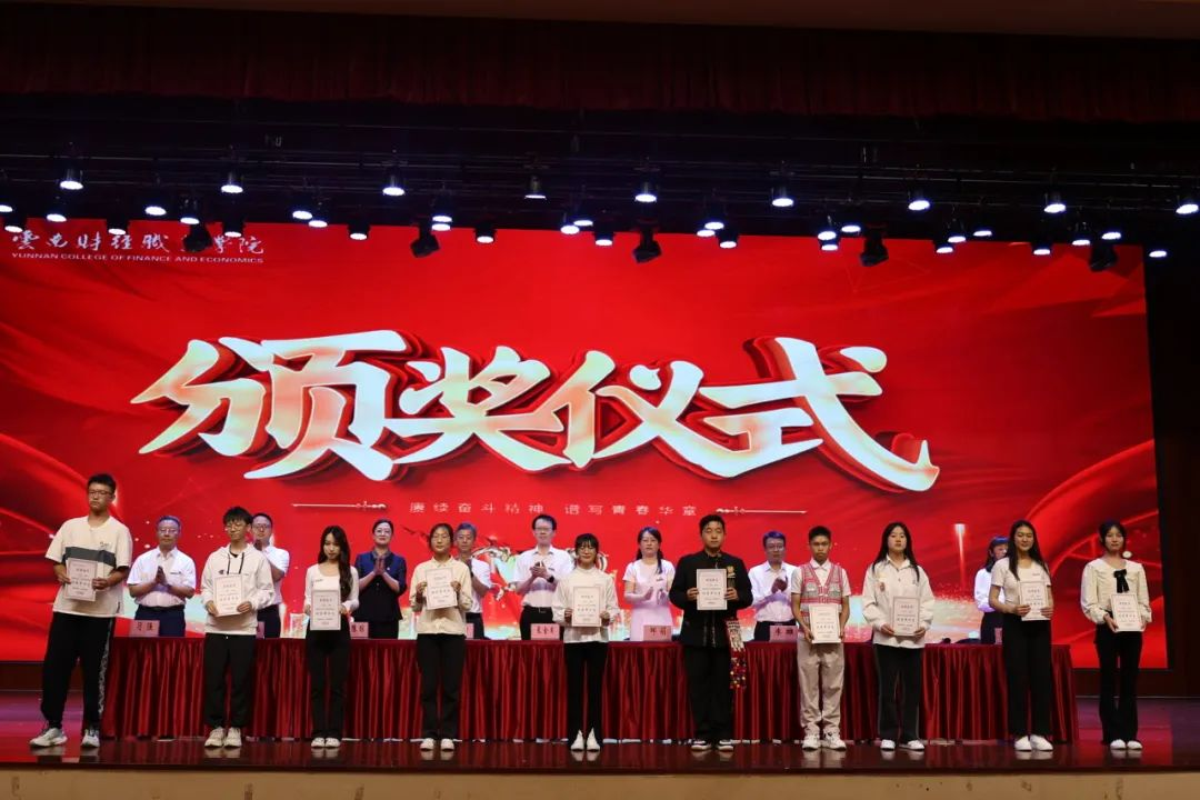 学校党委委员、副校长沈豫琼宣读《中共云南省委教育工委 云南省教育厅关于公布2022—2023学年高校省级三好学生 优秀学生干部 先进班集体及2023届省级优秀毕业生名单的通知》;学校党委委员、副校长尹湘萍宣读《中共云南财经职业学院委员会关于表彰2022—2023学年校级评奖评优获奖学生及班级的决定》。宣读完表彰决定后,学校领导到台前为省级优秀毕业生代表,校级优秀毕业生代表,云南省第十一届辅导员素质能力大赛三等奖和祖芬老师,2022年最关爱学生班主任获奖教师,2023年度最美辅导员李沧临老师、最美班主任仝畅老师颁发荣誉证书,为2023届毕业生代表颁发毕业证。