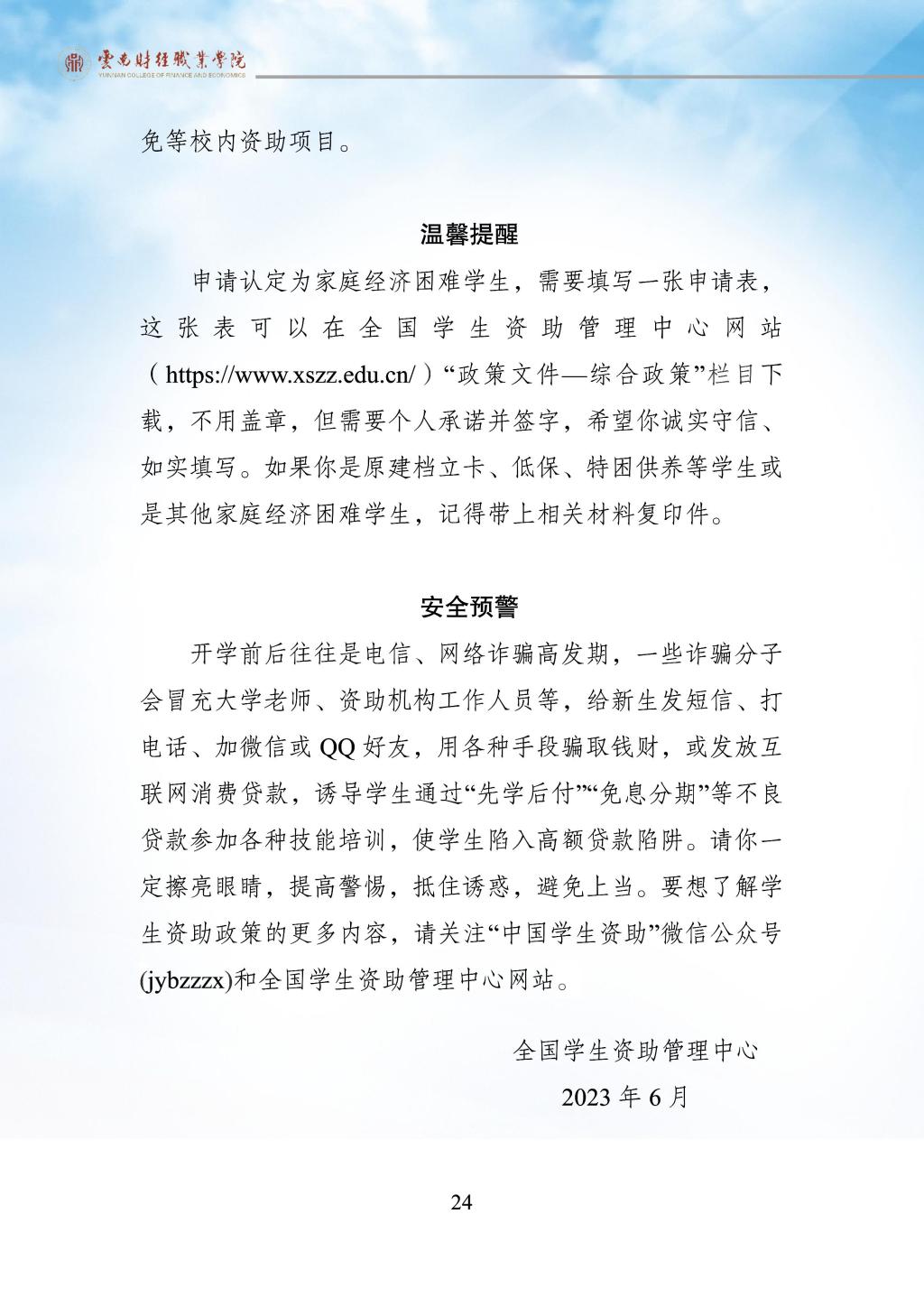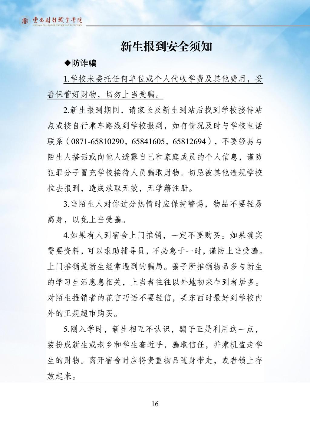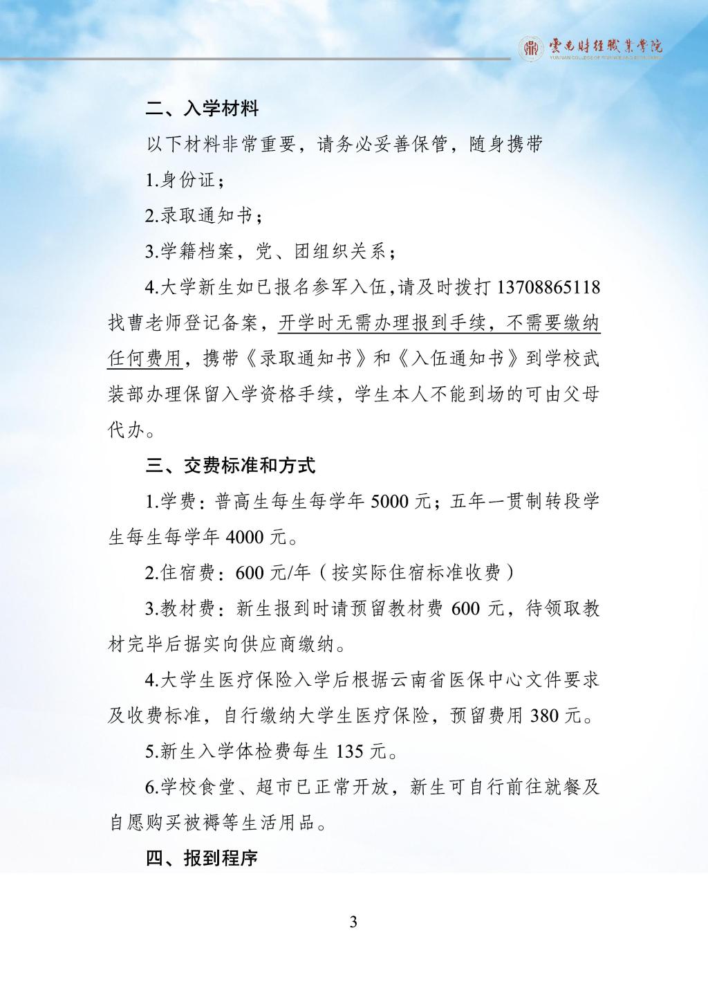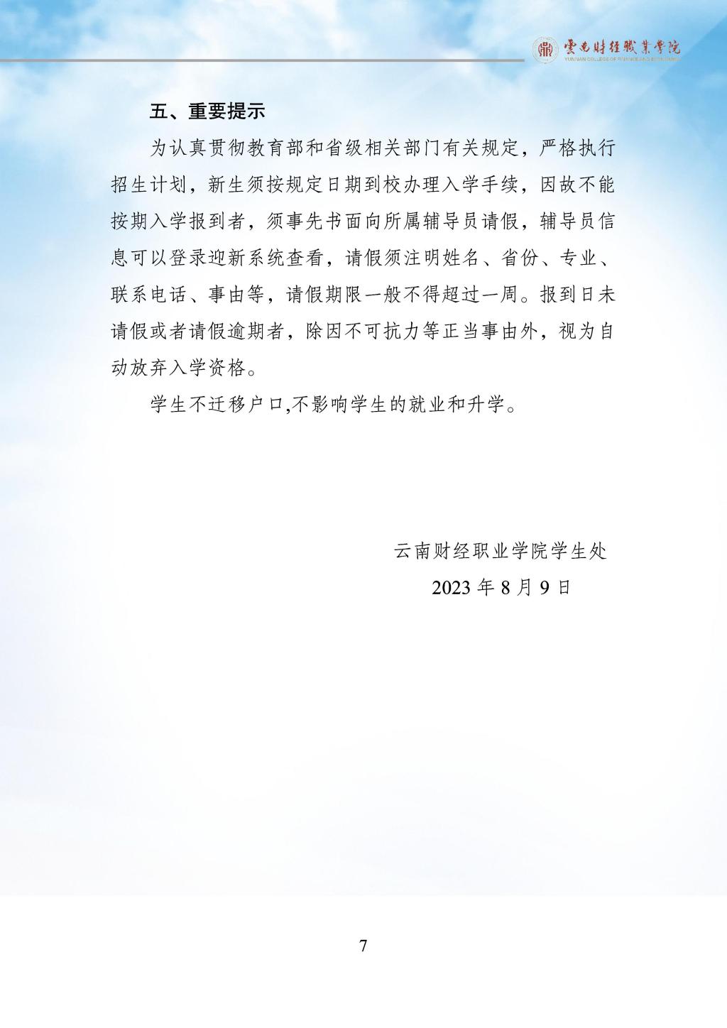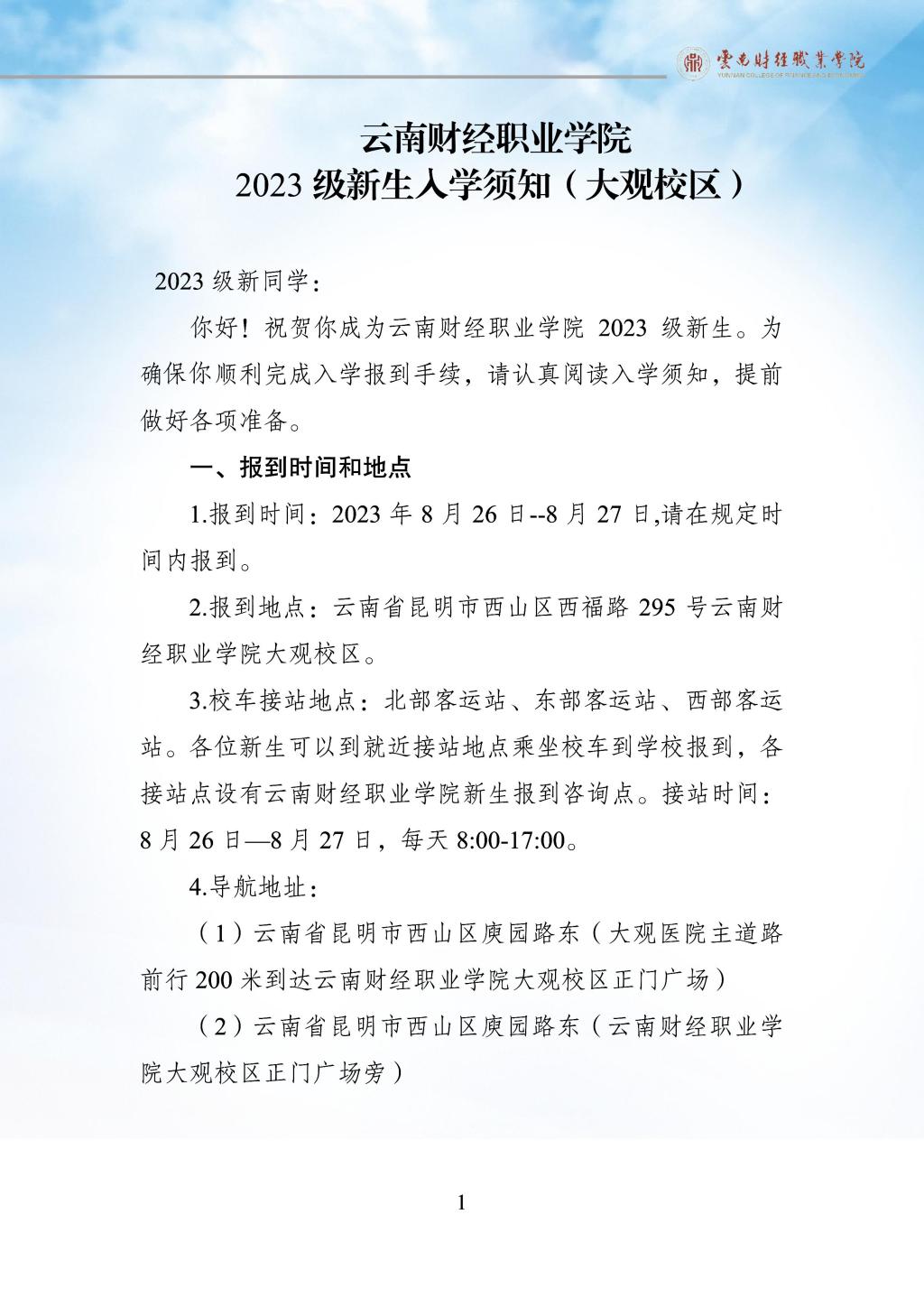 云南财经职业学院2023级新生入学须知(龙泉校区)