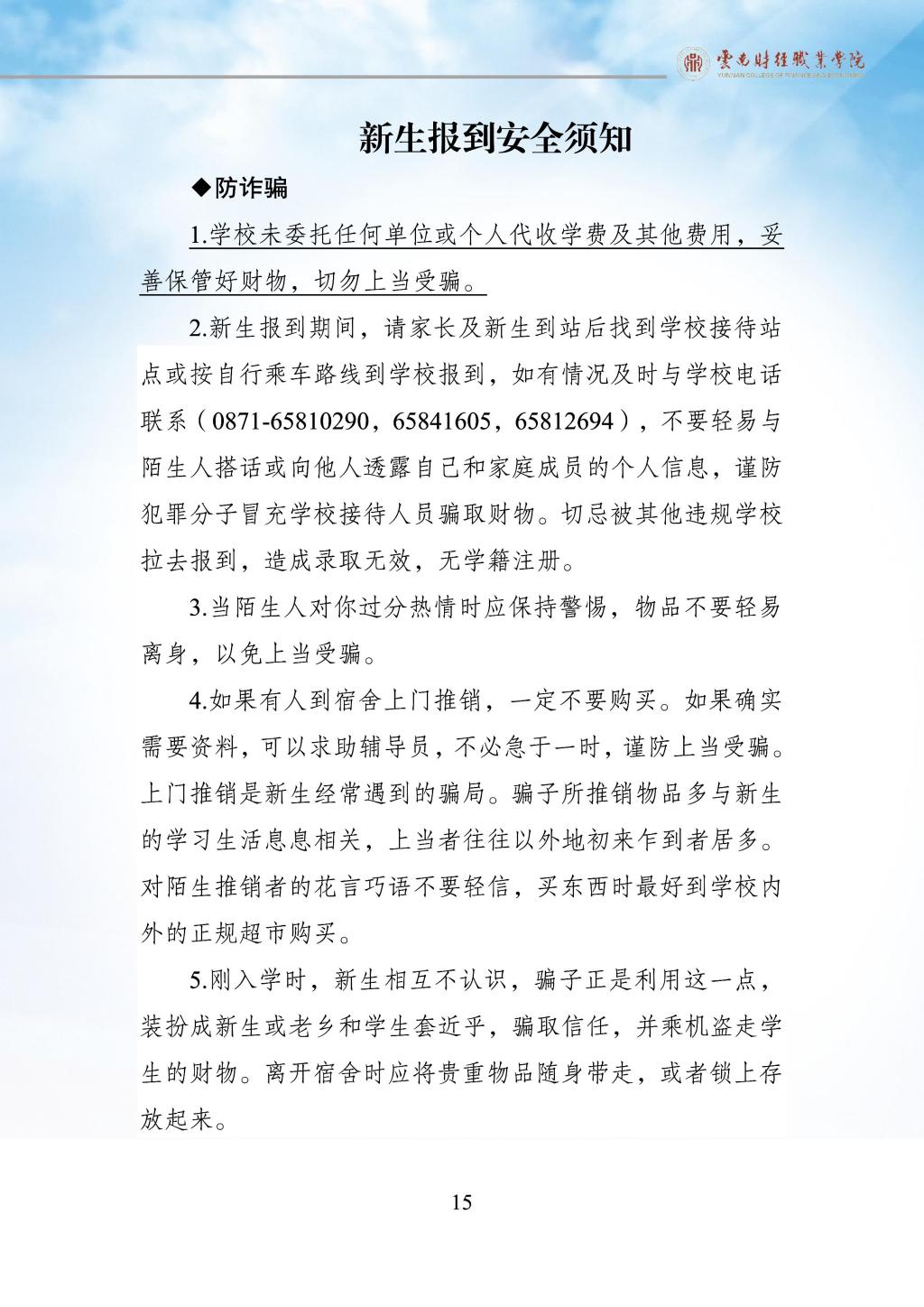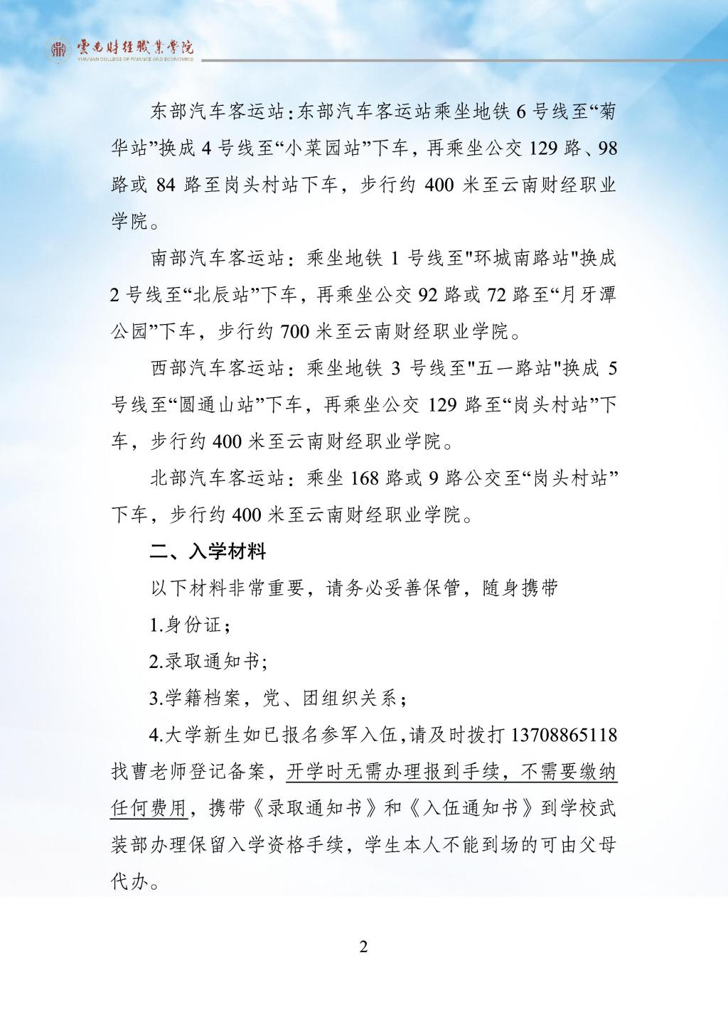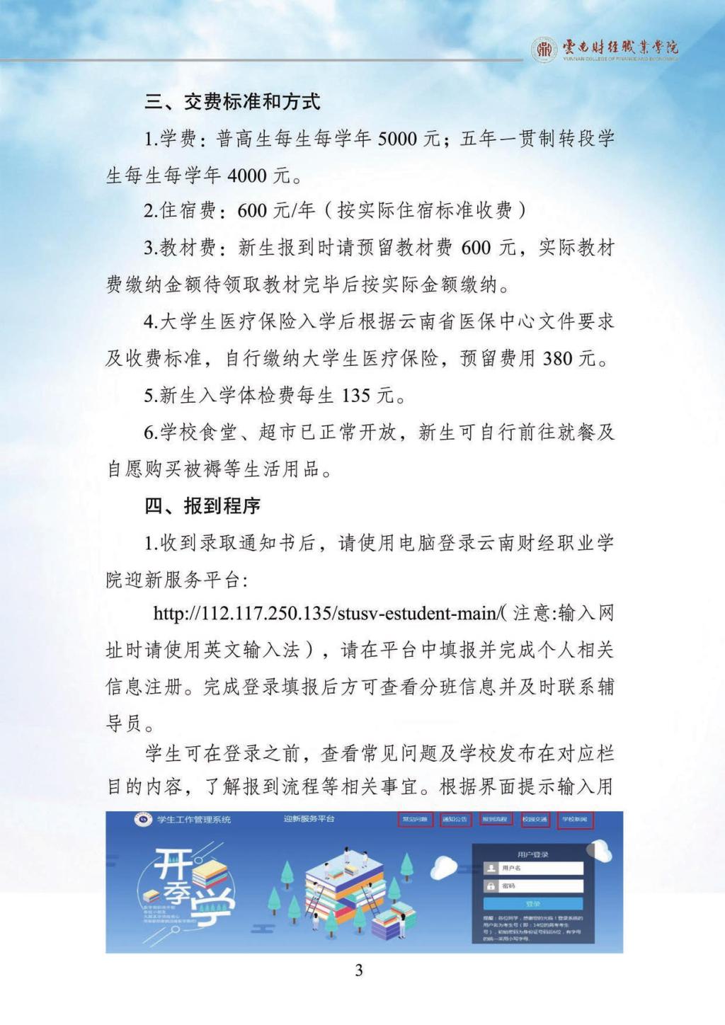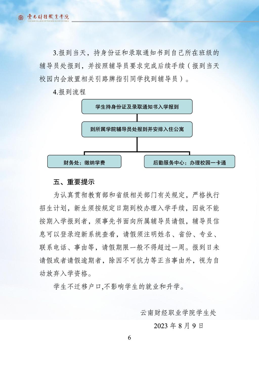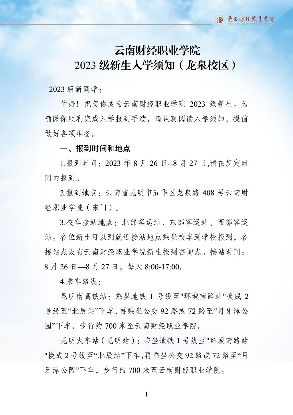 云南财经职业学院2023级新生入学须知(龙泉校区)