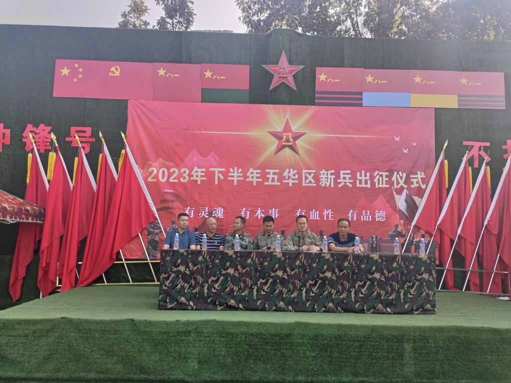 2023年9月15日下午,在五华区人民武装部组织下,学校武装部赴五华区某训练基地参加2023年下半年新兵出征仪式,热烈欢送参军入伍学生,五华区人民武装部和区政府相关领导出席仪式并做动员讲话。