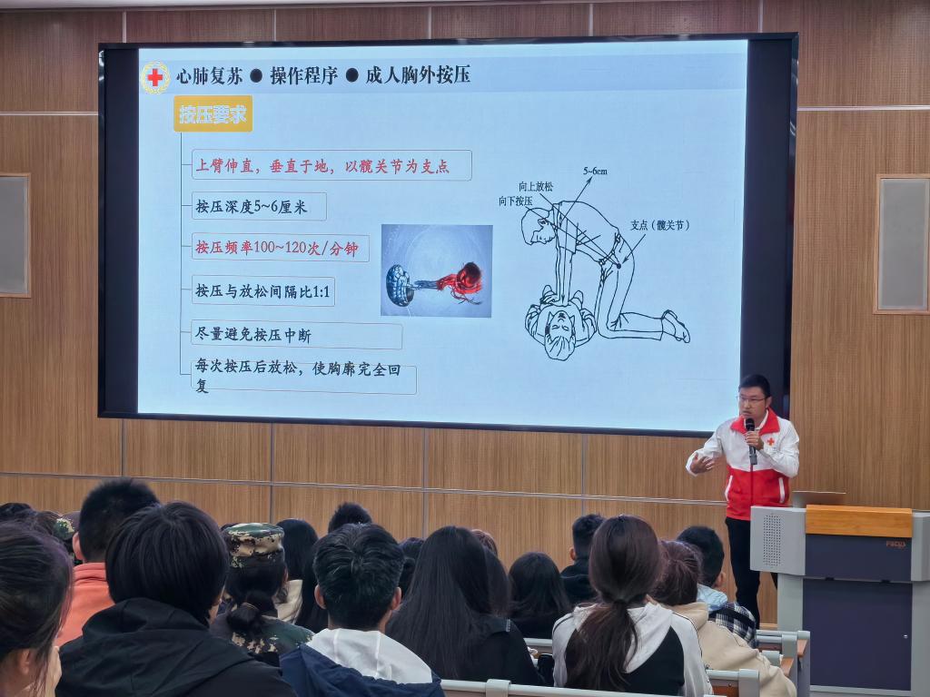 为进一步传播应急救护常识,普及校园急救知识,切实提高我校师生自救、互救的能力,2023年10月13日,学生处特邀云南省红十字备灾救灾中心(云南省红十字应急救护培训中心)讲师团,到学校开展应急救护培训。