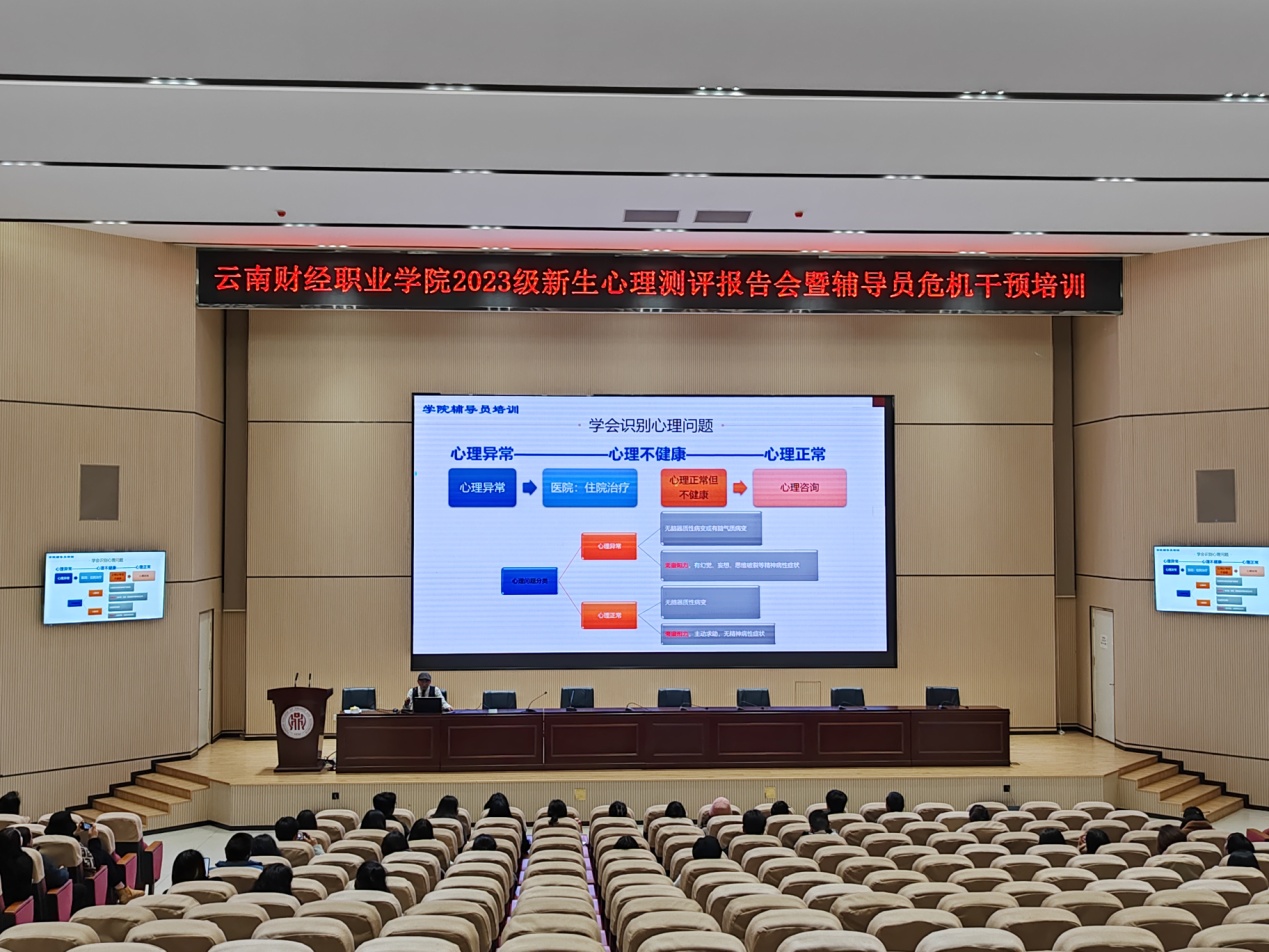 2023年12月7日,我校在铭德楼报告厅开展了2023级新生心理健康测评工作专题汇报会暨辅导员心理危机干预培训。