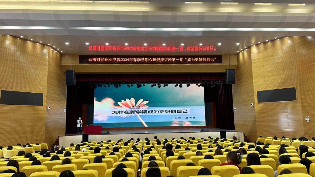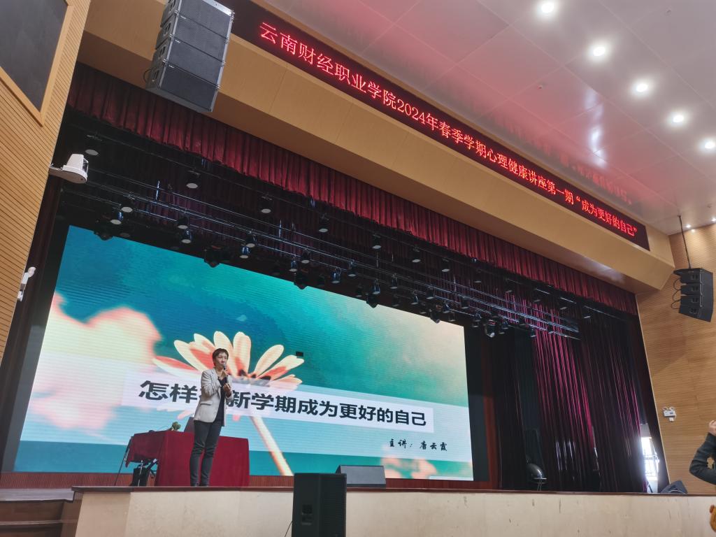 2024年3月28日,云南财经职业学院在学校大礼堂为本院的600余名学生带来了一场“怎样在新学期成为更好的自己”为主题的大学生生涯规划讲座,本次讲座的邀请了国家二级心理咨询师唐云霞老师进行主讲。