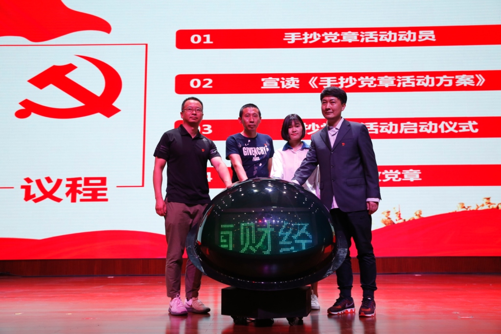 校长助理彭锋泽同志、团委书记李超强同志、宣统部负责人以及学生代表一起开启启动球,并宣示云南财经职业学院手抄党章活动正式启动。
