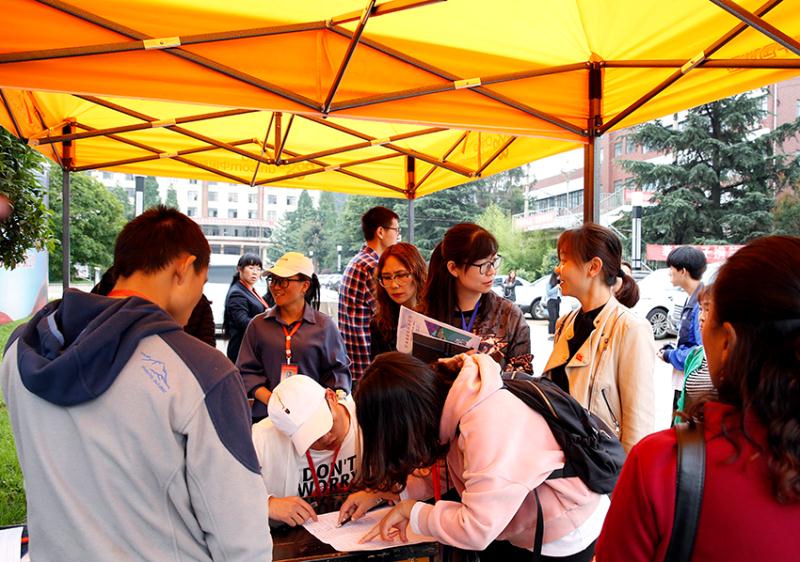 6月15日中午12:00,由学院学生处设点,组织迎接学生家长,家长们陆续到达并签到,老师、同学们热情接待。家长代表们于下午14:30在接待点集合,一起参观校园。
