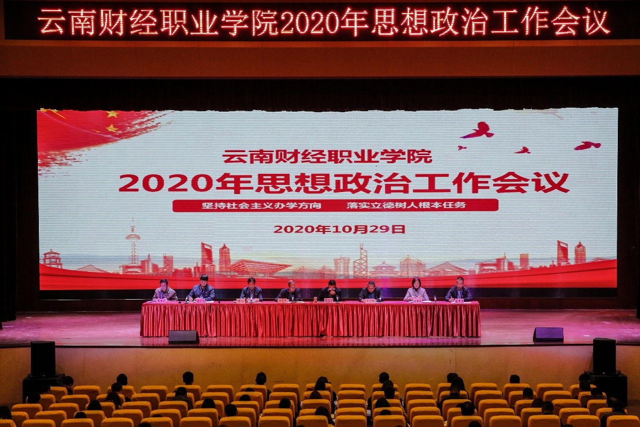 为学习贯彻党的十九大精神和习近平新时代中国特色社会主义思想,贯彻落实全国和全省2020年度高校思想政治工作视频会议精神,部署学校思想政治和意识形态工作,推动学校思想政治教育工作高质量发展,10月29日上午,学校在大礼堂召开2020年思想政治工作会议。学校党委书记李思泽,党委副书记、校长陶昌学,副书记仲新,副校长李树伟、沈豫琼、刘宁飞,党委委员组织部部长张国庆,党委委员宣统部部长陈君奇出席会议;全体中层干部及各党支部支委,各二级学院辅导员及班主任,学生代表参加了会议。会议由副书记仲新同志主持。