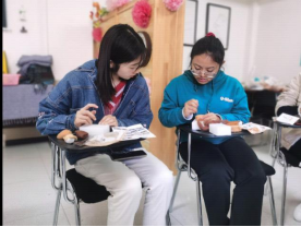 (心灵手工坊的同学细心对新同学进行问题解答和指导)