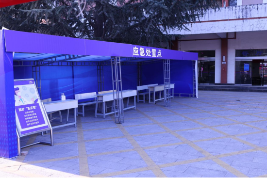 为预防紧急情况发生,在学生报到入校之前,学校专门组织了医务人员、后勤人员、保障人员以及学生志愿者进行了防控演练,学校领导党委副书记仲新、副校长刘宁飞亲自到场进行工作指导。
