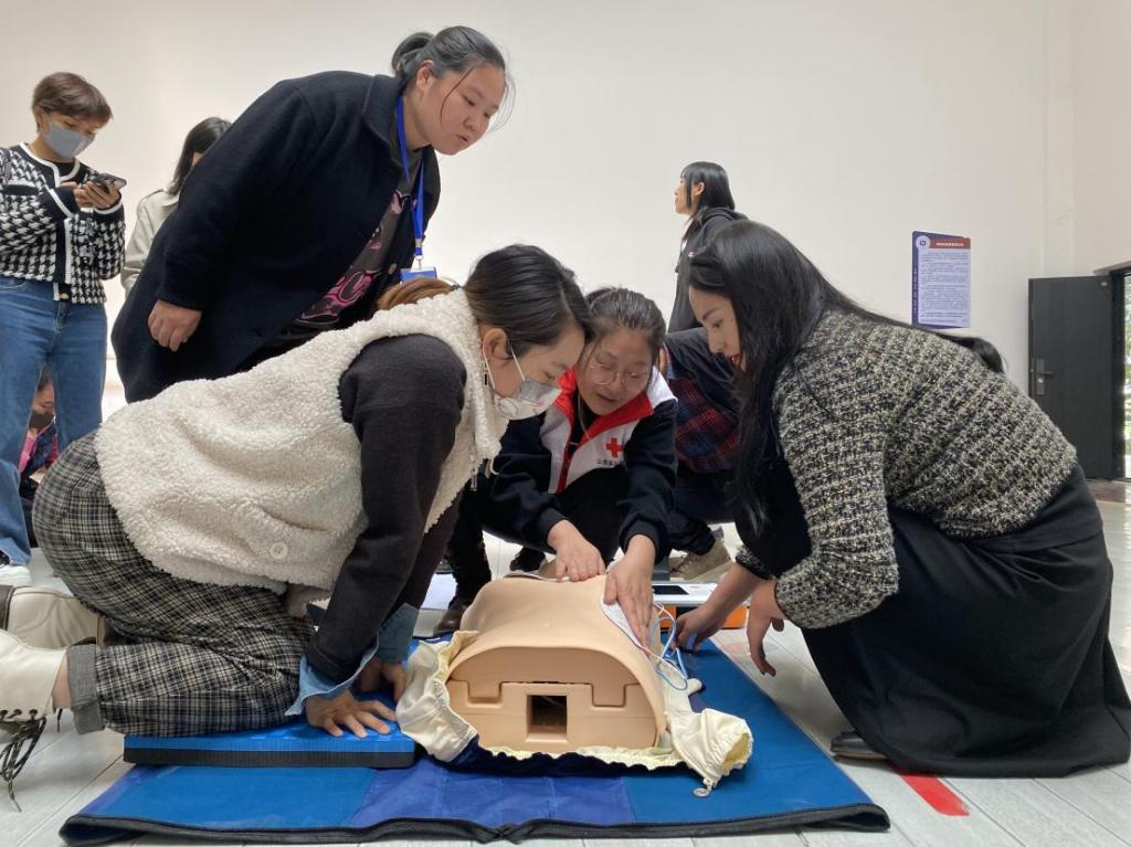 本次活动邀请云南省红十字备灾救灾中心(云南省红十字应急救护培训中心)到校对参训辅导员进行专业的应急救护知识和技能培训。通过现场授课、笔试、实操教学、技能考核四个环节,让辅导员老师了解红十字人道救护理念,增强“热爱生命、护佑生命”的意识,掌握成人心肺复苏操作及自动体外除颤仪(AED)的使用。