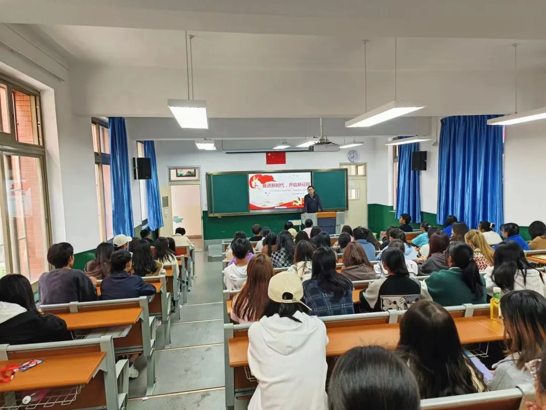 杨帆老师以“奋进新时代,开启新征程——学习习近平总书记在中国共产党第二十次全国代表大会上的报告”为主题,围绕“三个务必”、过去五年的工作和新时代十年的伟大变革、五个必由之路等主题与学生宣传交流党的二十大精神。勉励学生积极奋进,敢于斗争,善于斗争,牢记总书记的嘱托,响应和贯彻总书记的号召,争做奋进新时代的主力军。