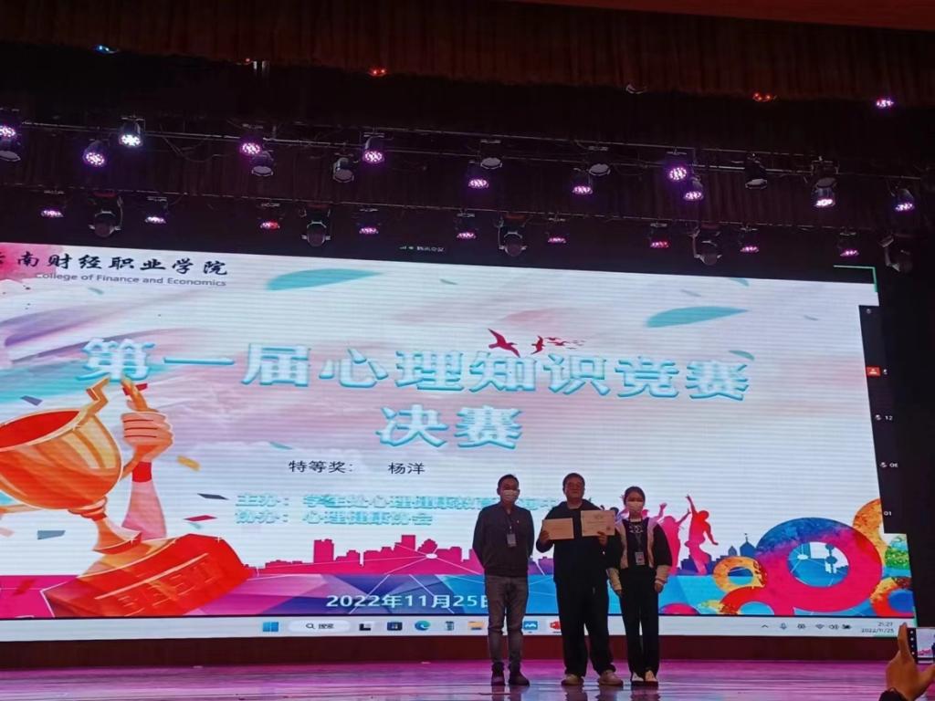 为更好的提高同学们的心理健康知识水平和心理健康意识,帮助同学们保持心理健康以及培养同学们对心理知识的学习兴趣,营造积极向上的心理氛围,促进心理健康发展,自我人格的完善,我校于2022年11月25日星期五下午19:00-21:30在大礼堂举办了第一届大学生心理知识竞赛决赛,本次进入决赛的选手共有16名。