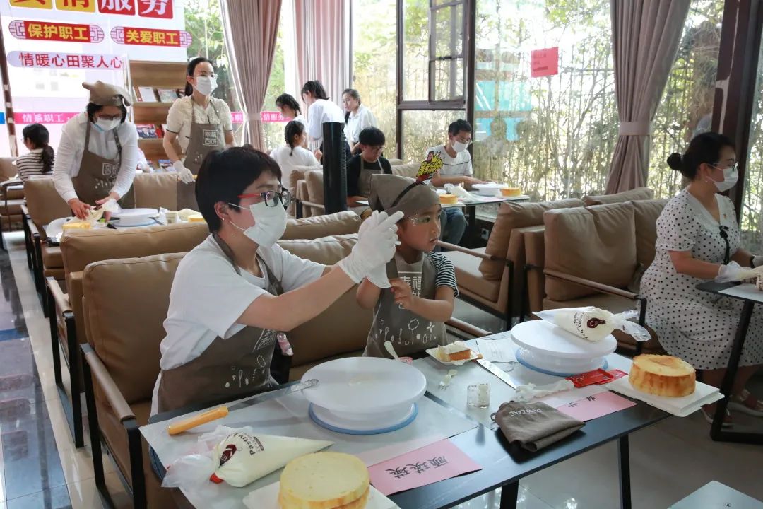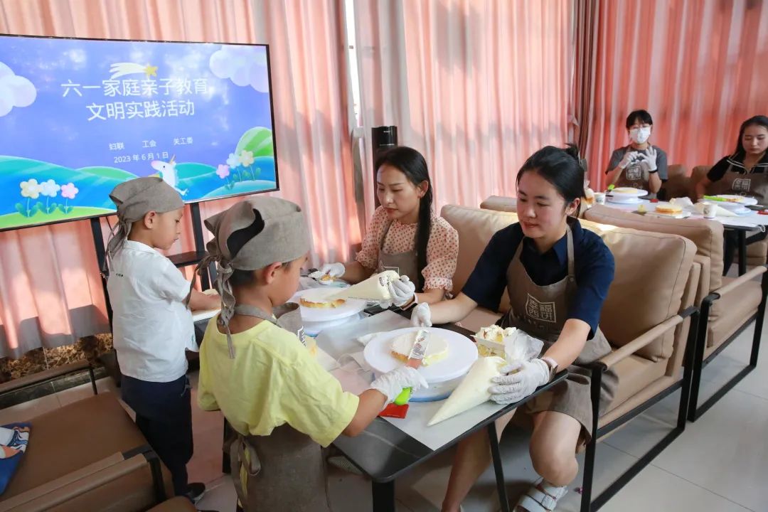 在手工环节,教职工和小朋友们一起动手,充分发挥想象力和创造力,共同完成亲子蛋糕制作。
