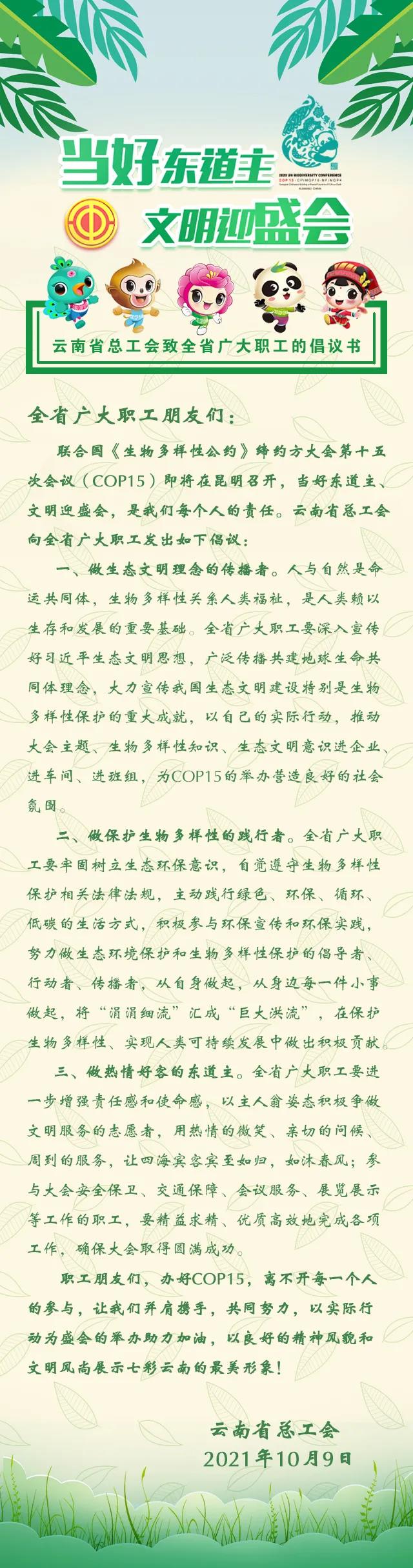 当好东道主 文明迎盛会——云南省总工会致全省广大职工的倡议书