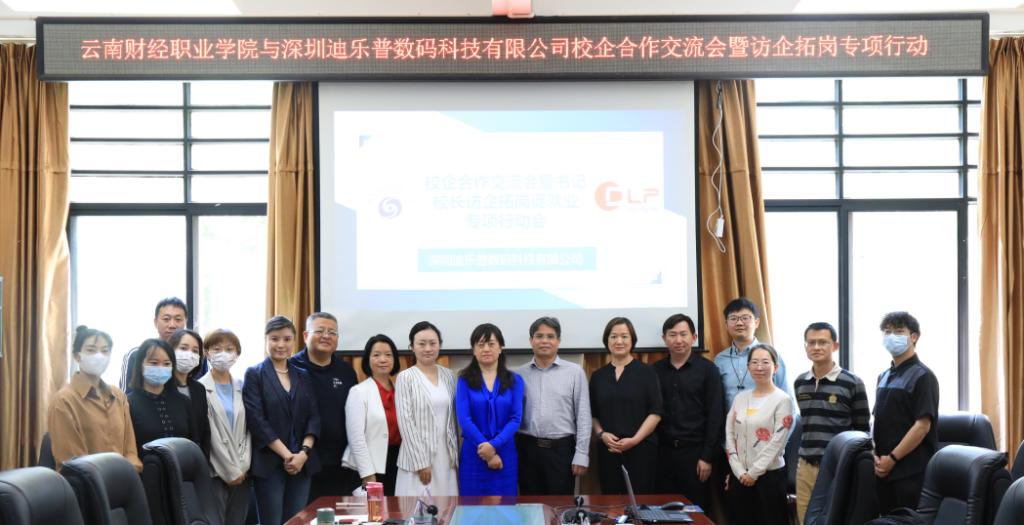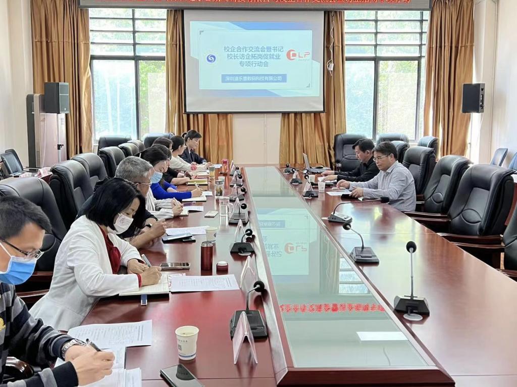 2022年4月28日,学校党委副书记、校长邹丽、副校长沈豫琼、副校长严黄一仪、相关二级院(部)和职能部门负责人、信息中心技术工程师与应邀来访的深圳迪乐普数码科技有限公司刘林运一行就校企合作、产教融合和拓岗促就业等方面进行了研讨交流。
